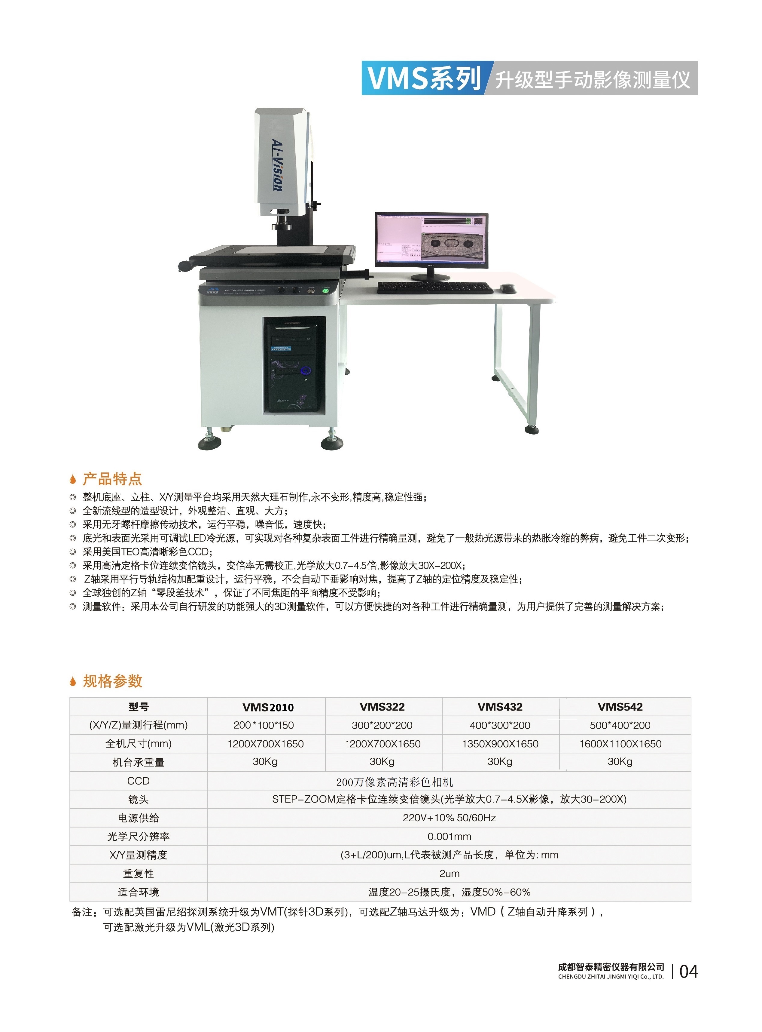 成都智泰精密儀器有限公司專注于精密測量儀器,人工智能,智能制造領域,專業(yè)從事智能視覺自動化檢測解決方案的貿(mào)易型企業(yè)。公司成立于2011年,位于天府之國成都,現(xiàn)有行業(yè)精英十余人,辦公倉儲面積200余平米。 公司主要產(chǎn)品為精密光學影像測量儀,精密輪廓形狀測量儀,精密機器人定位系統(tǒng),精密智能視覺尺寸檢測儀器,精密表面缺陷智能檢測設備,工業(yè)工程特種機器人。 公司憑借過硬的技術(shù)實力和產(chǎn)品方案,率先進入智能視覺自動化檢測領域,推廣以精密智能視覺自動化檢測為基礎的機器人自動化應用,公司不斷整合上下游的資源,擁有巨大的全產(chǎn)業(yè)鏈優(yōu)勢。客戶群體覆蓋了我國精密制造業(yè)的多數(shù)領域,包括航空、航天、軍工、汽車、新能源、光伏、食品,精密電子、精密機械、模具、PCB、LCD、五金、塑膠、醫(yī)療、教育、計量及科研院所等行業(yè)。 公司創(chuàng)新的產(chǎn)品能滿足生產(chǎn)與制造行業(yè)客戶的要求,訓練有素的工程師能及時提供多種技術(shù)服務,如解...